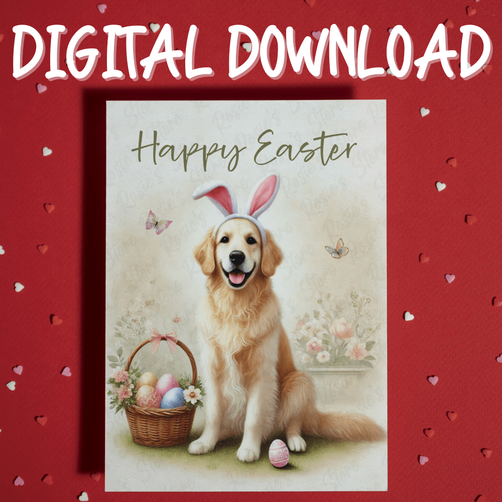 Easter Digital Greeting Card, Golden Retriever Dog: Happy Easter