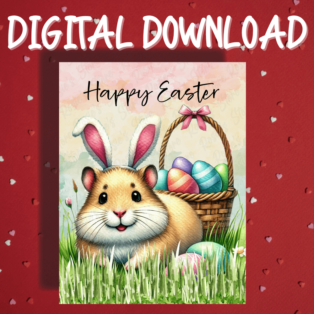 Download your printable card today and send Easter smiles with this adorable hamster design! 🐾🐣💖