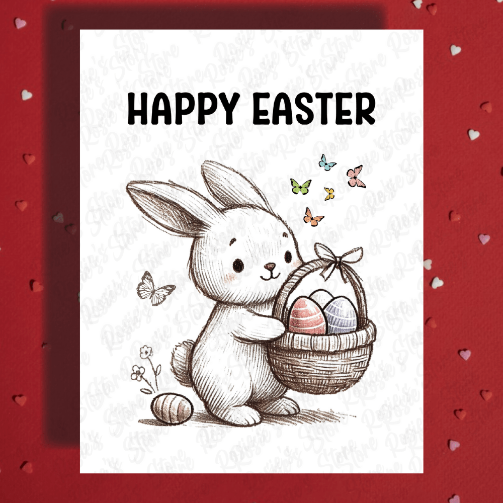 "Happy Easter" Bunny & Basket Greeting Card 🐰🌸🎨