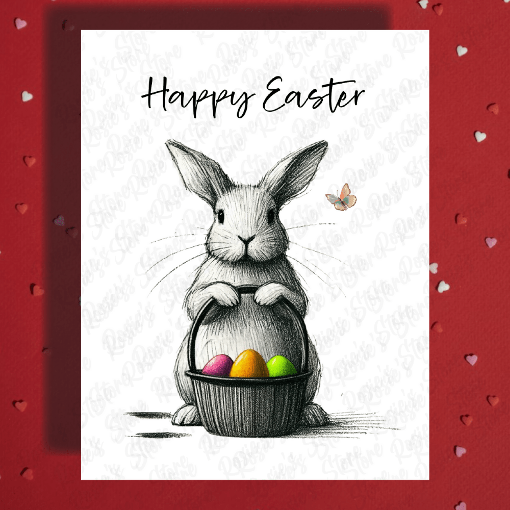 "Happy Easter" Bunny & Basket Greeting Card 🐰🌸🎨