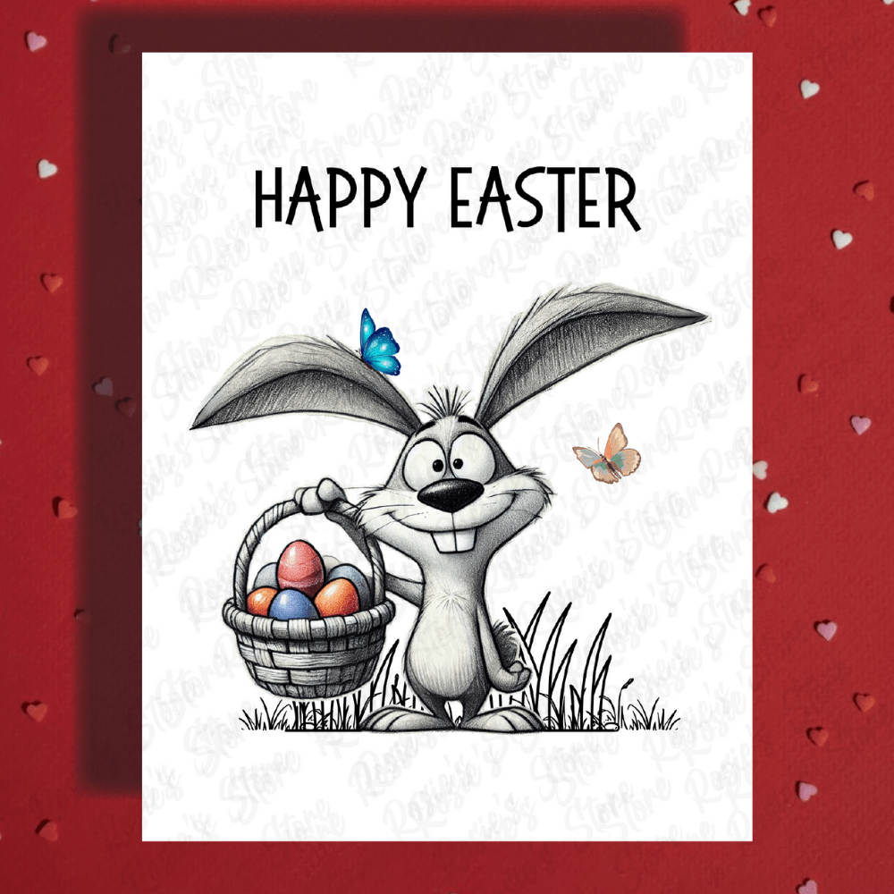 "Happy Easter" Bunny & Basket Greeting Card 🐰🌸🎨