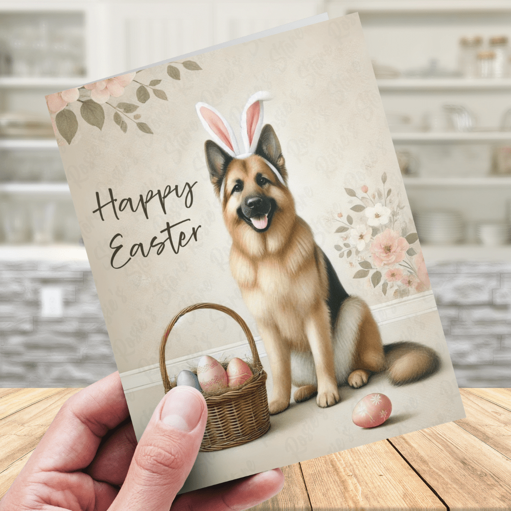 ✨ Available in Packs of 1, 3, 6, or 12 – perfect for sending Easter cards for grandkids, kids, friends, or as a gift for coworkers. Great as an Easter invitation card or a keepsake for any German Shepherd dog lover!