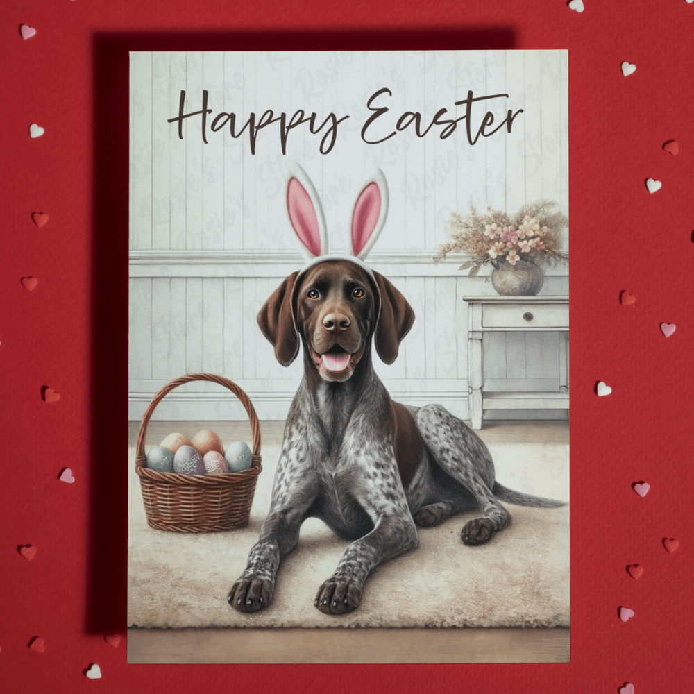 🐰🌸 Adorable German Shorthaired Pointer Easter Card – Customizable "Happy Easter" Greeting! 🌸🐰