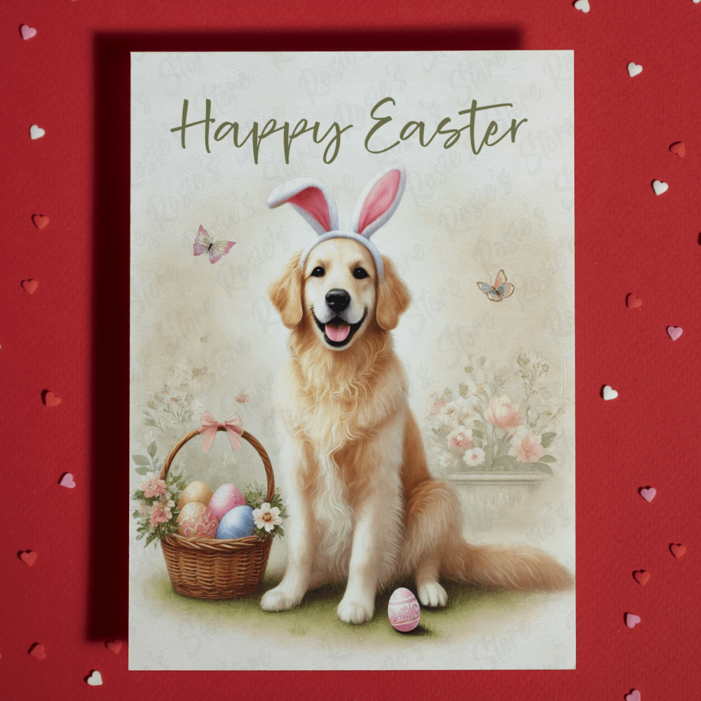 🐰🌸 Adorable Golden Retriever Easter Card – Customizable "Happy Easter" Greeting! 🌸🐰