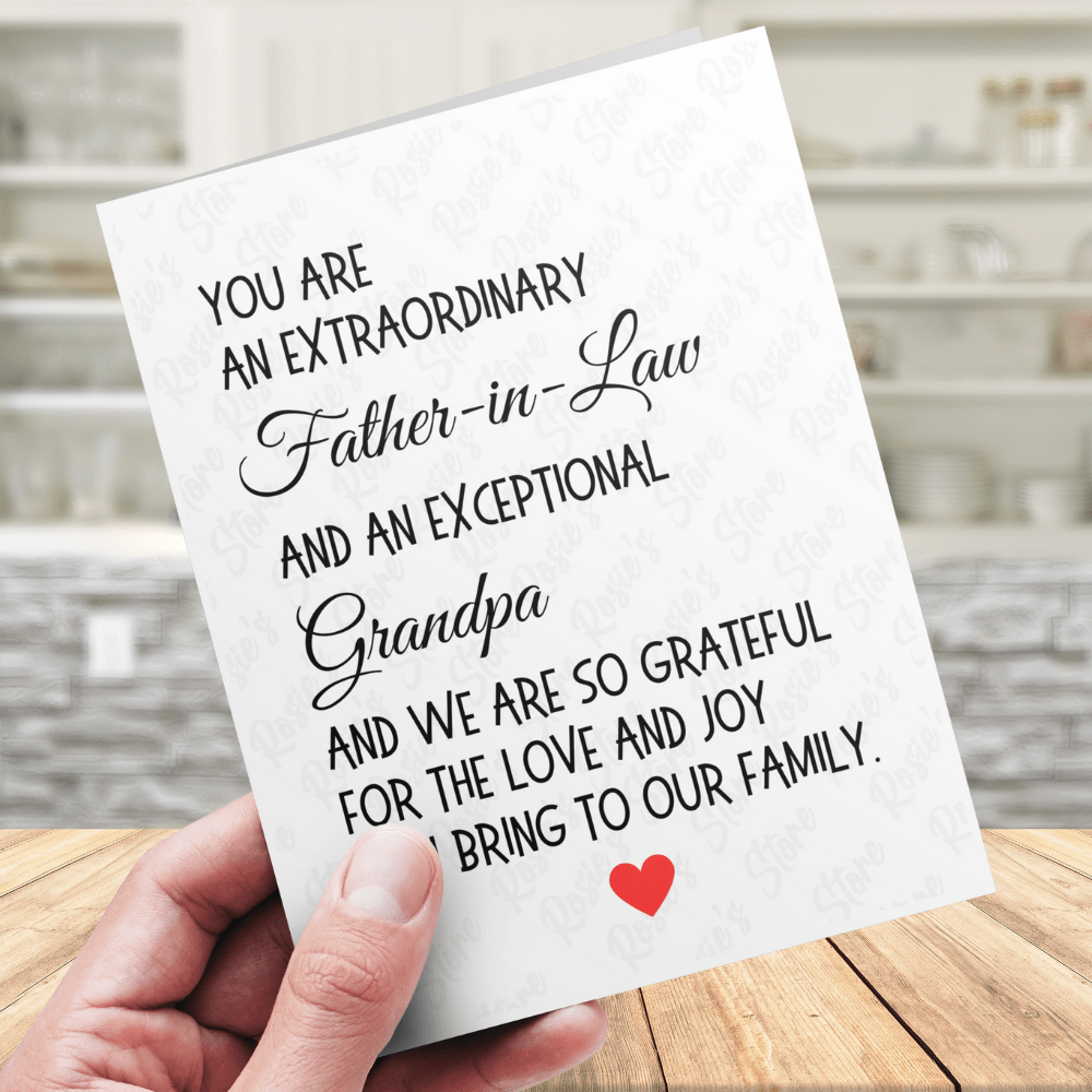 - Front Text: "You are an extraordinary Father-in-Law and an exceptional Grandpa, and we are so grateful for the love and joy you bring to our family."