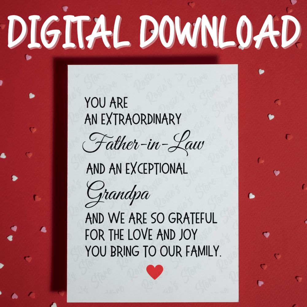 🎉 Show your appreciation for your amazing father-in-law with our heartfelt digital download greeting card! 🎉