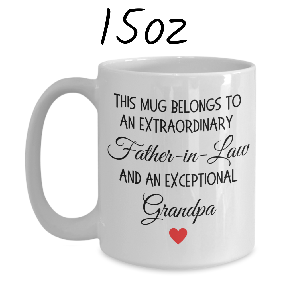 Celebrate the amazing man who does it all with our white ceramic coffee mug, proudly stating, "This mug belongs to an extraordinary Father-in-Law and an exceptional Grandpa." Whether he's your father-in-law or the beloved grandpa to your children, this mug is the perfect way to show your appreciation for his love and dedication.