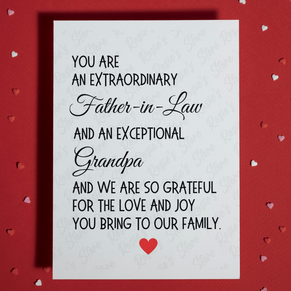 Perfect for various special occasions such as birthdays, Father's Day, Christmas, or even weddings, this card is an ideal gift for your father-in-law and grandpa. It's a sentimental card from a son-in-law or daughter-in-law, expressing deep appreciation and love. Whether you're looking for a meaningful greeting card or thoughtful father-in-law gifts, this card is perfect for showing your gratitude and admiration.