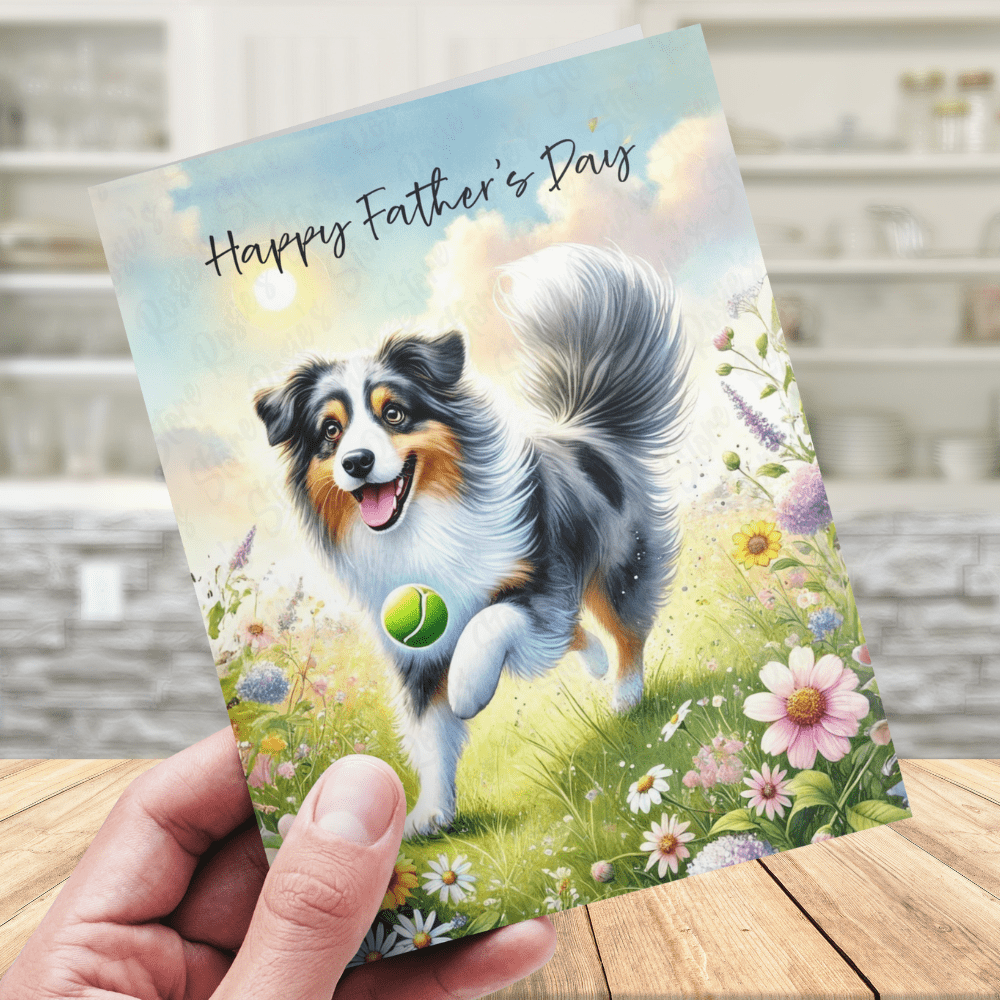 This fun and loving Father's Day card is perfect for any dad, dog dad, or Australian Shepherd-loving father, adding a touch of fun and a lot of heart to his special day!
