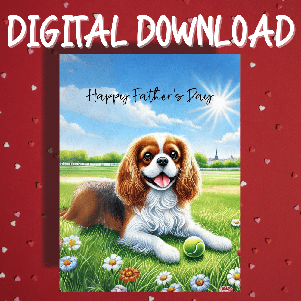 Father's Day Digital Greeting Card, Cavalier King Charles Spaniel Dog 2: Happy Father's Day