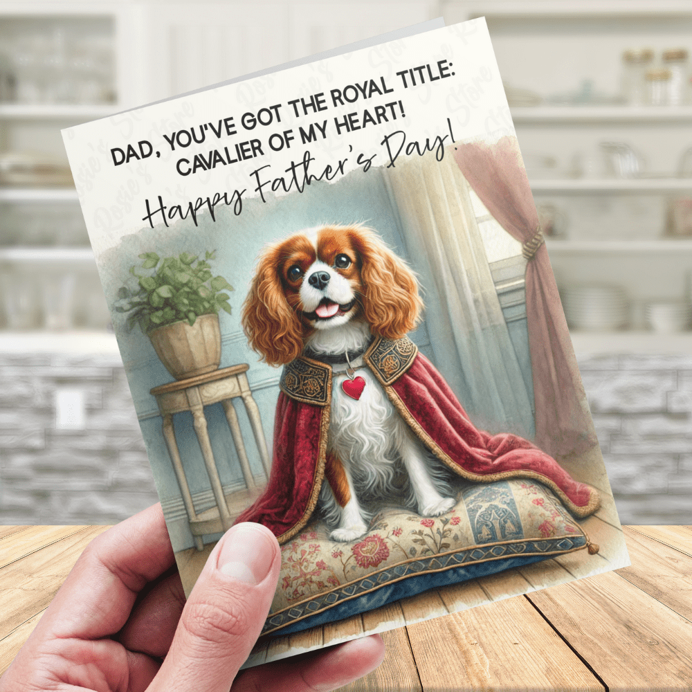 This funny and sentimental Father’s Day card is perfect for any dad, dog dad, or Cavalier King Charles Spaniel lover, making him feel royally loved on his special day.
