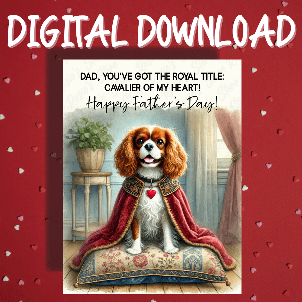 👑🐾 Give Dad the royal treatment with this charming Cavalier King Charles Spaniel Father's Day printable card! 💙🐶