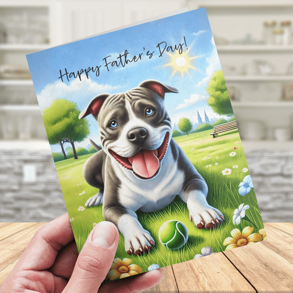 A perfect card for any dog-loving dad, especially those proud Pitbull parents, this illustrated keepsake is fun, sentimental, and ready to fetch a smile! 🐾