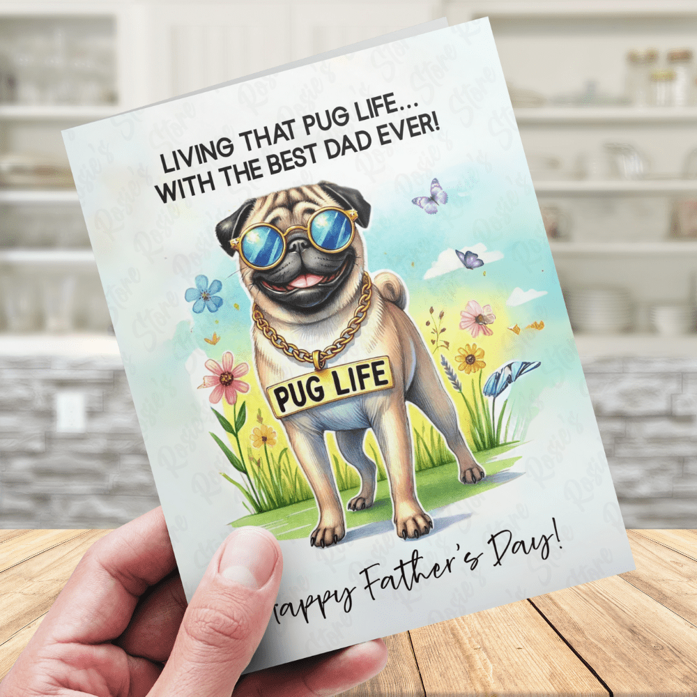 This funny and heartwarming Father's Day card is the perfect way to celebrate any dad, dog dad, or pug-loving father, making him smile and feel like the rockstar he is!