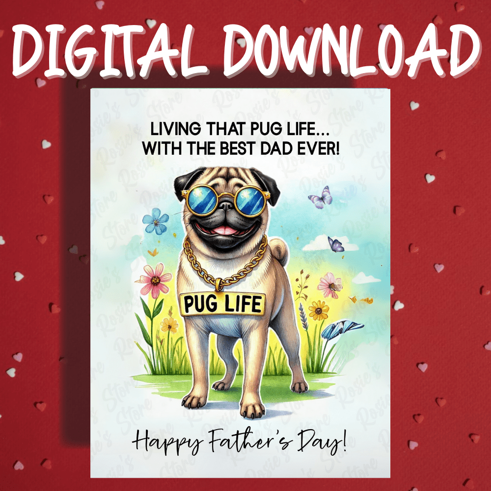 🐾😎 Celebrate the "Pug Life" with Dad in style this Father's Day with this hilarious and adorable printable card! 🐶💙