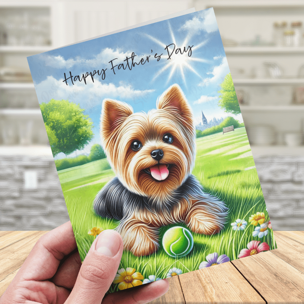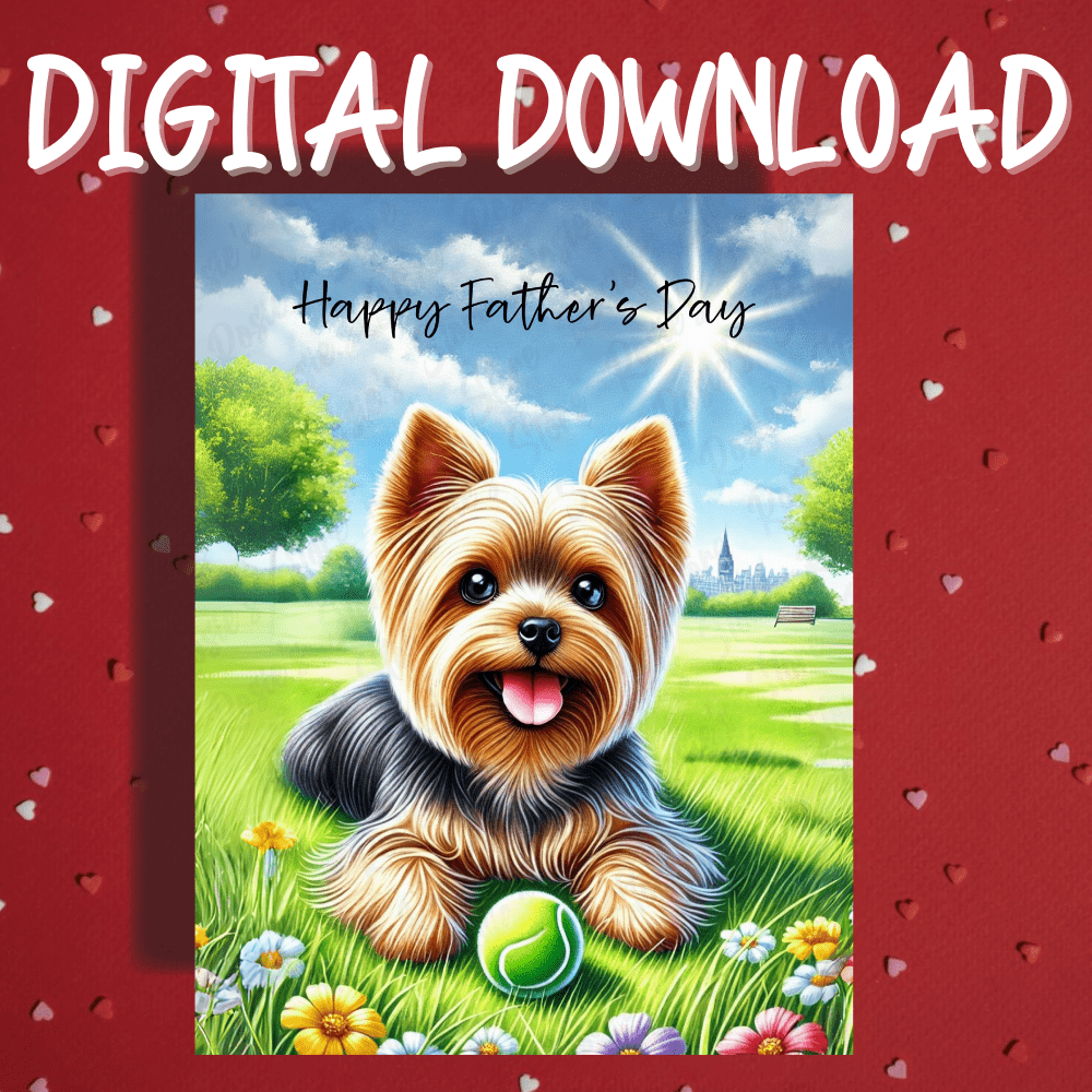 Father's Day Digital Greeting Card, Yorkie, Yorkshire Terrier Dog: Happy Father's Day