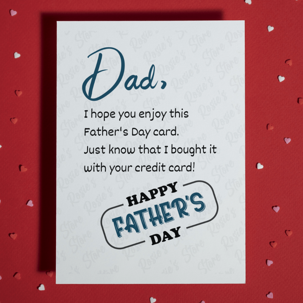 Spread the laughter and make Father's Day unforgettable with our "Dad, I hope you enjoy this Father's Day card" greeting card. Order now and let your dad know that your love comes with a touch of credit card humor!
