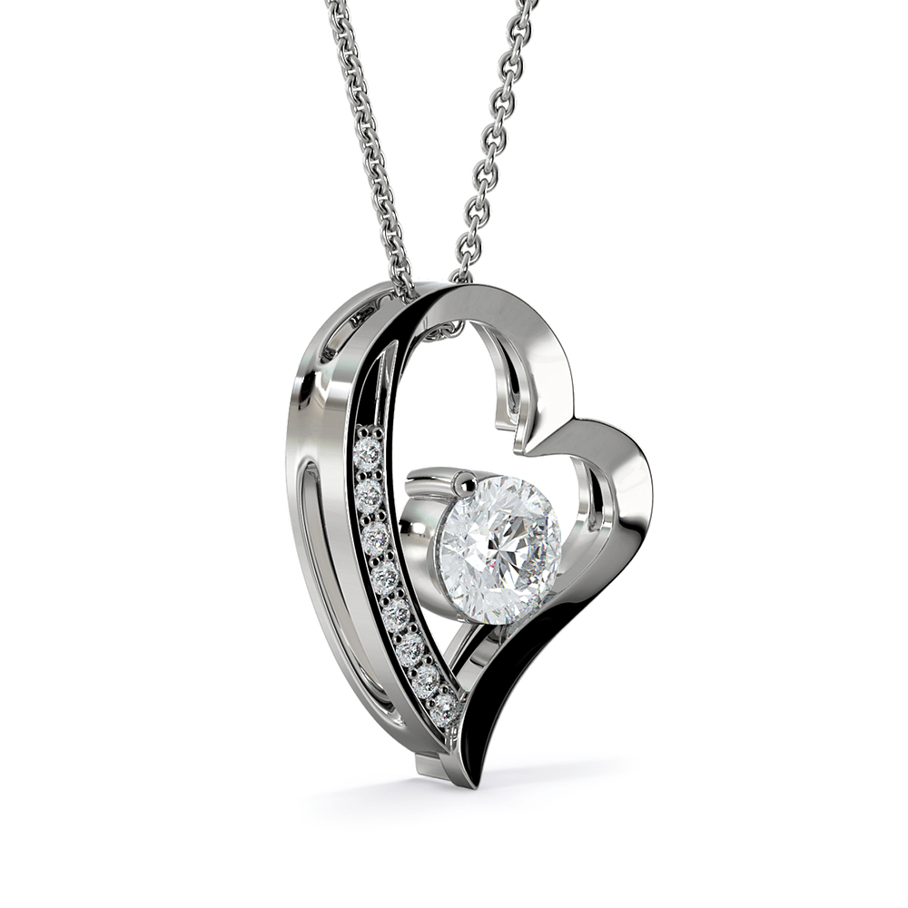 This dazzling Forever Love Necklace features a polished heart pendant surrounding a flawless 6.5mm cubic zirconia, embellished with smaller crystals adding extra sparkle and shine.