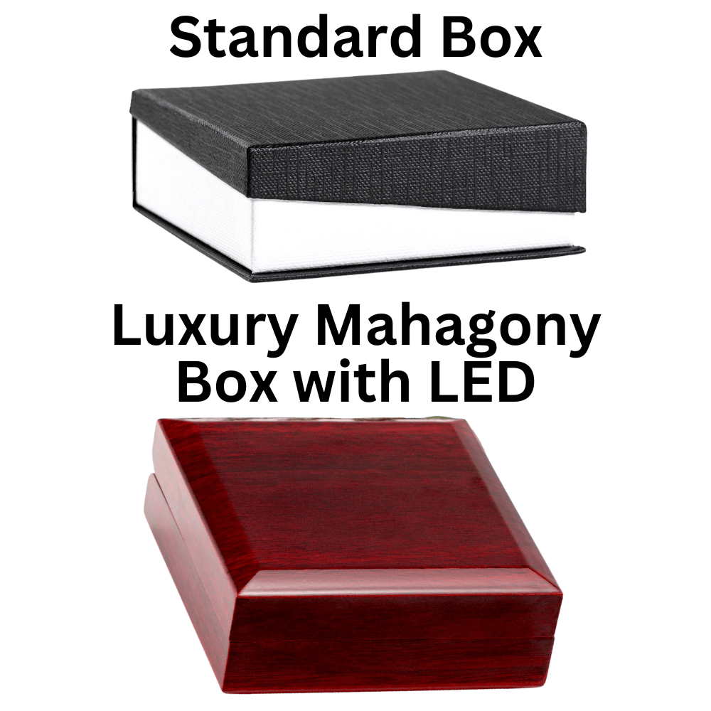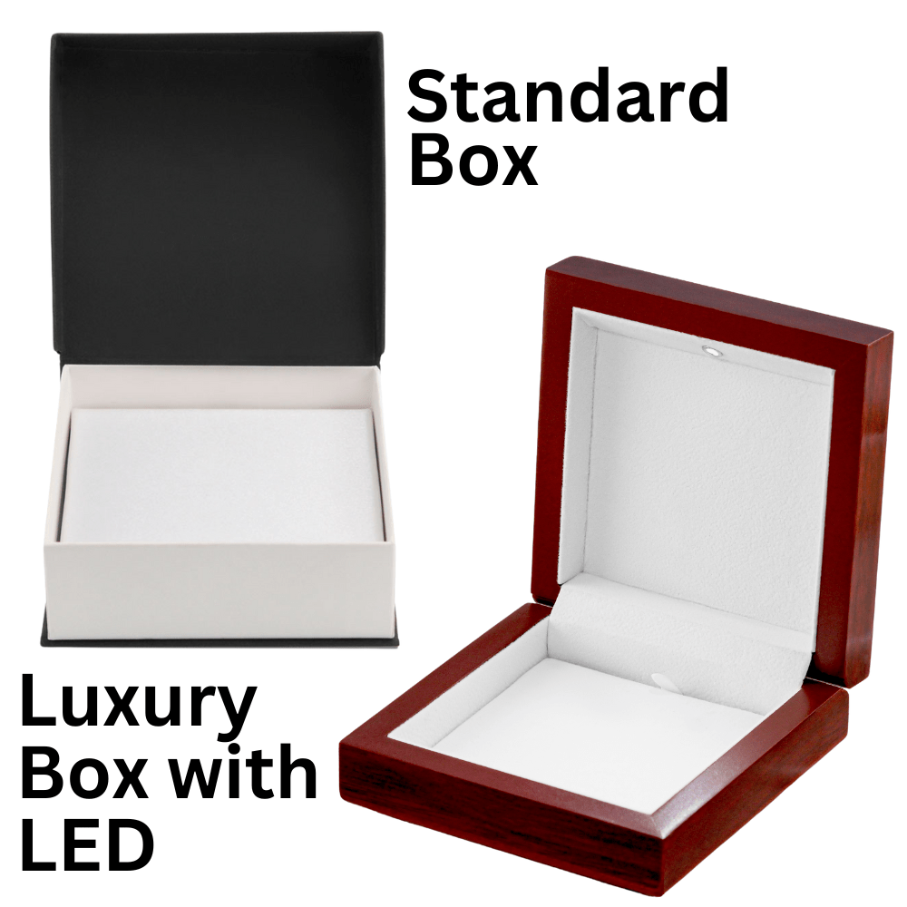 Each necklace is presented in a soft touch gift box, making it ready for gifting. For an added touch of luxury, upgrade to our mahogany-style box featuring a brilliant LED spotlight that highlights the necklace’s beauty.