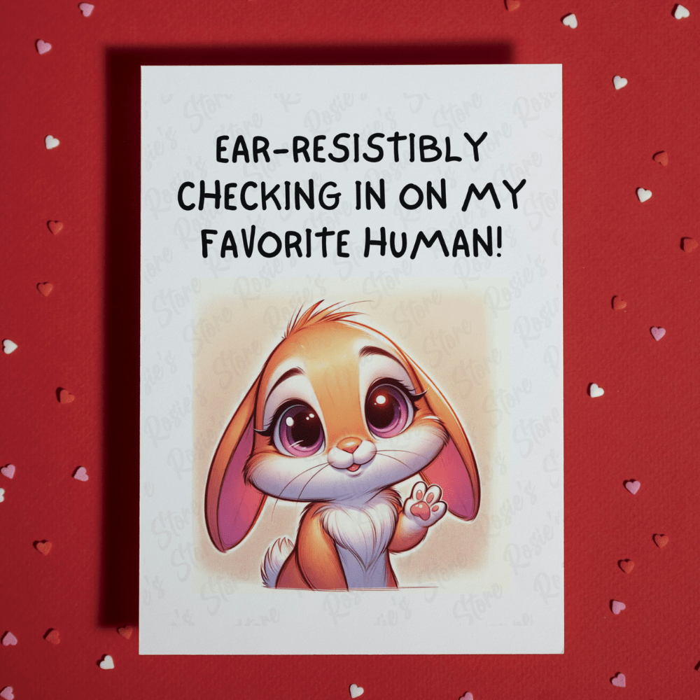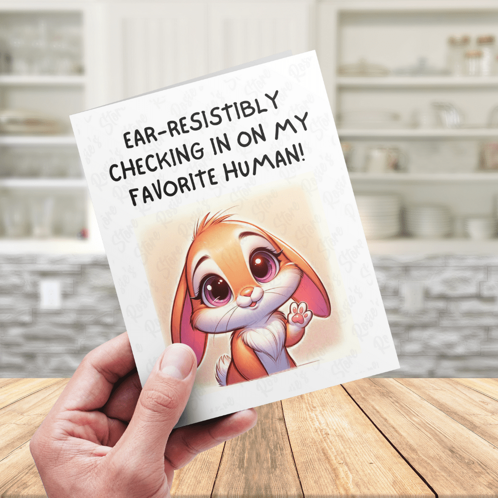 Order now and send some love and positivity to your favorite human. With our adorable and pun-filled greeting card, you'll bring joy and laughter to their day and let them know they're always in your thoughts. 🌟💖🐰