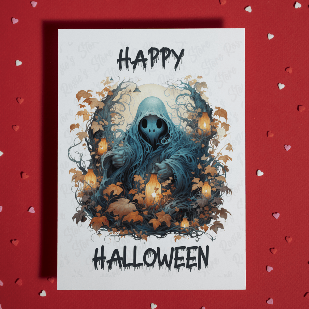 Celebrate Halloween with our beautifully illustrated card, bringing a touch of magic and mystery to your celebrations. It's the perfect addition to haunted houses, spooky gatherings, or as a charming gesture to Halloween enthusiasts.