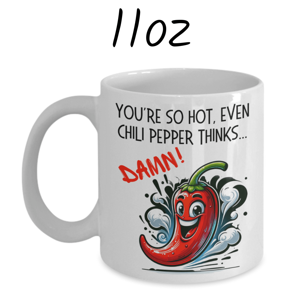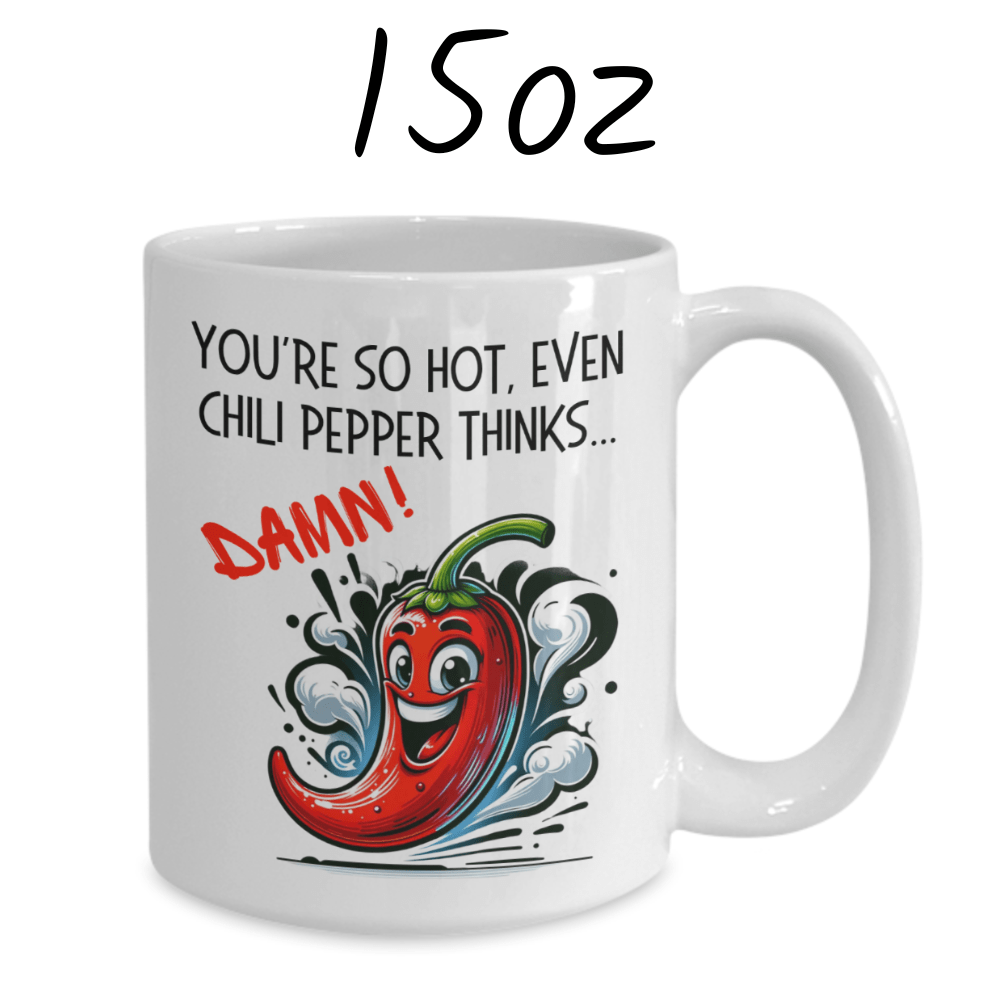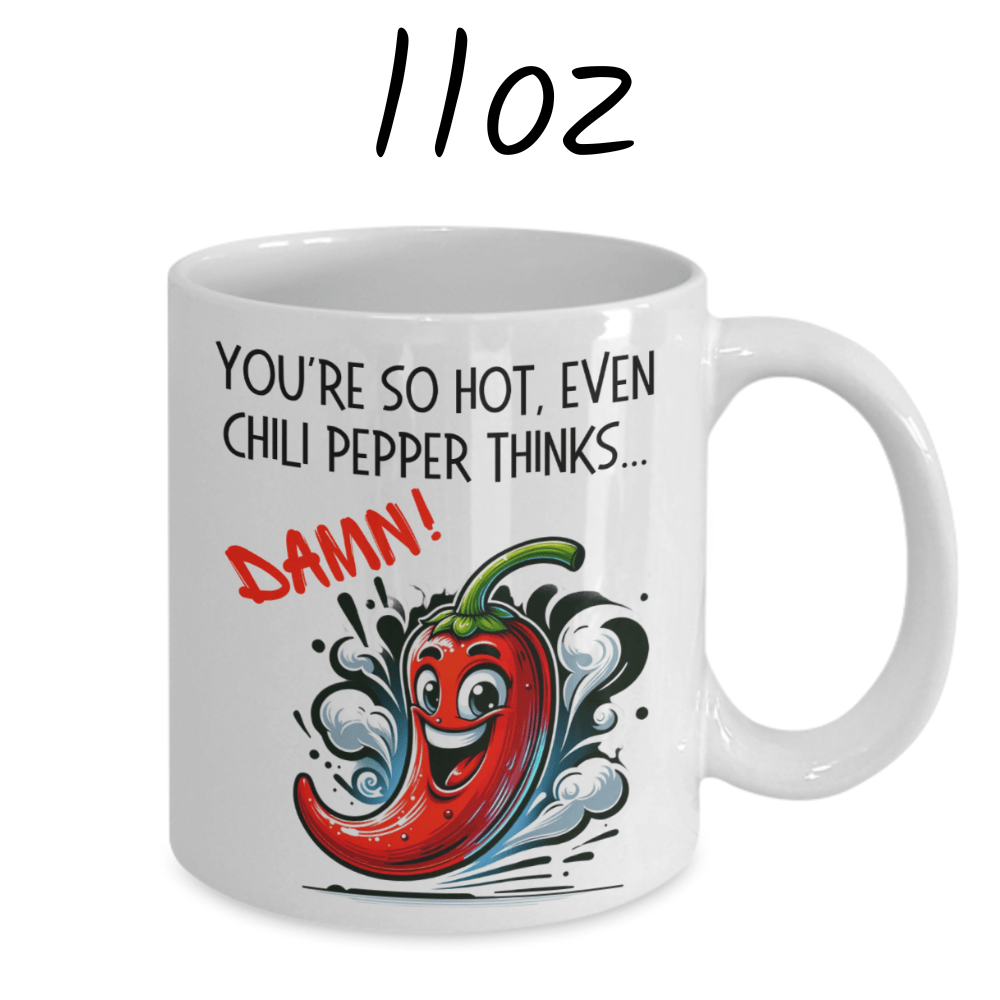 Make a bold statement with our sizzling white ceramic coffee mug, featuring the fiery phrase: "You're so hot, even chili pepper thinks...DAMN!" Whether you're celebrating an anniversary, birthday, or simply want to add some spice to your loved one's day, this mug is sure to bring a smile to their face.