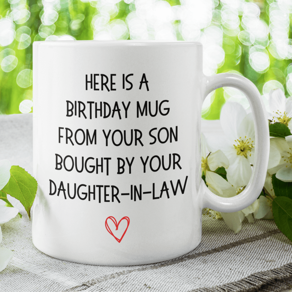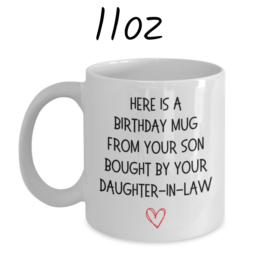 Celebrate your father-in-law's birthday with a touch of humor and a lot of love with our unique coffee mug, humorously declaring, "Here is a birthday mug from your son bought by your daughter-in-law." This cleverly designed mug is perfect for showing your father-in-law how much he means to both of you, while also giving him a good chuckle.