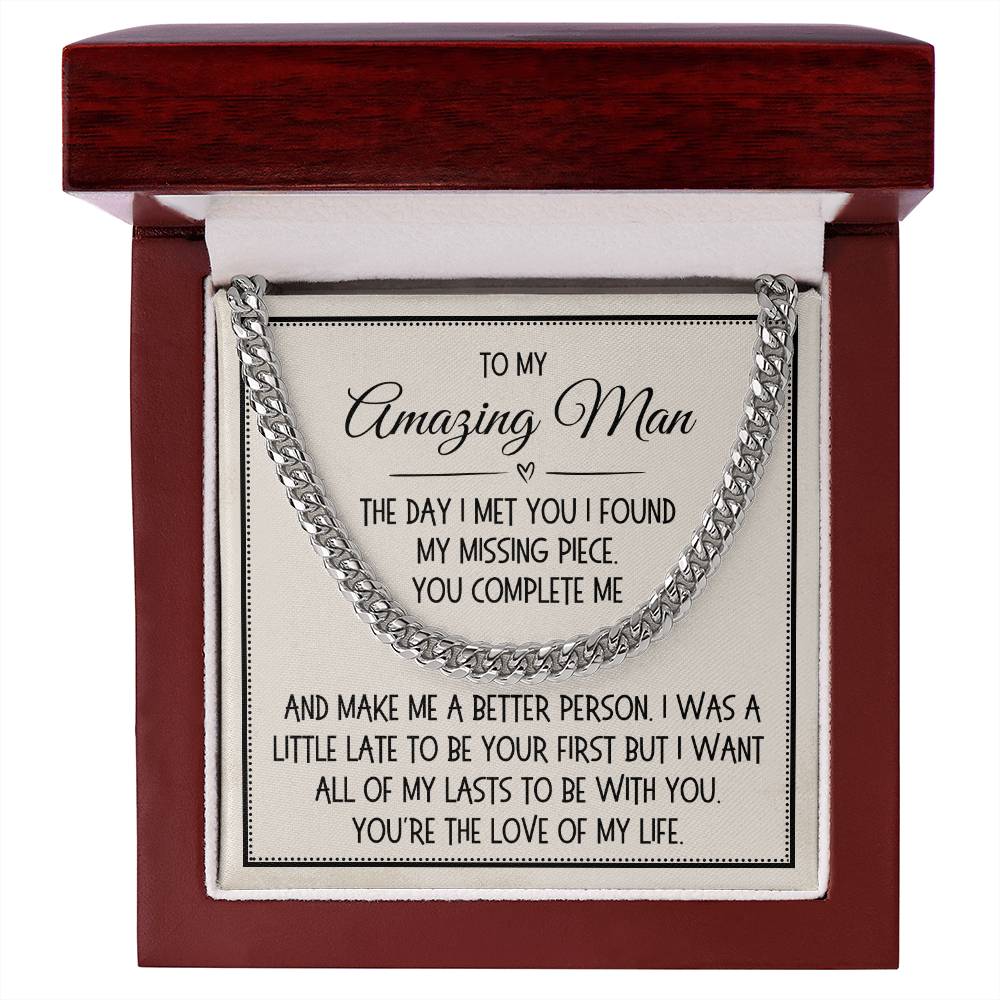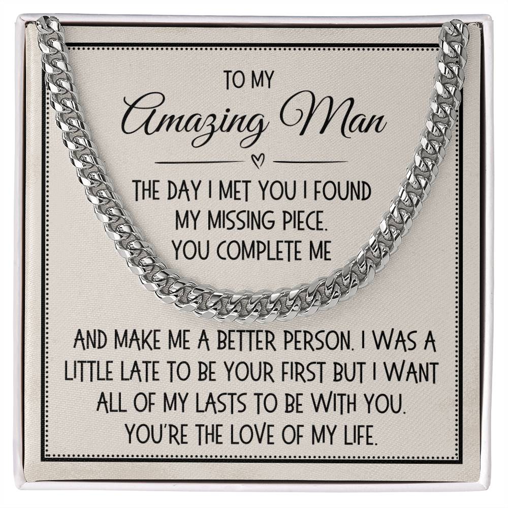 🌟 Link Chain Necklace with Message Card and Gift Box for My Man 🌟