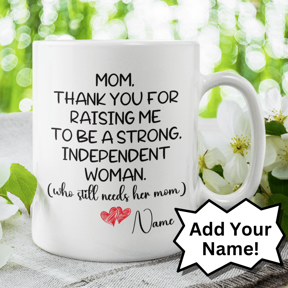 Express Your Gratitude: Show your mom how much you appreciate her love, guidance, and support with this personalized coffee mug. Its humorous message and personalized touch are sure to bring a smile to her face and warm her heart with every sip.
