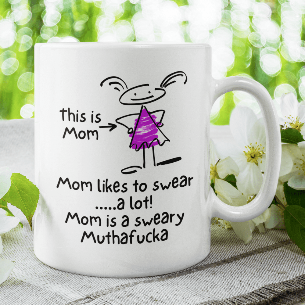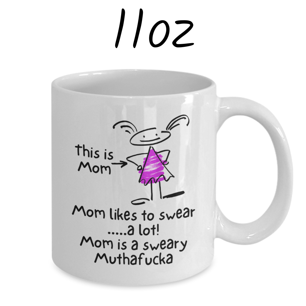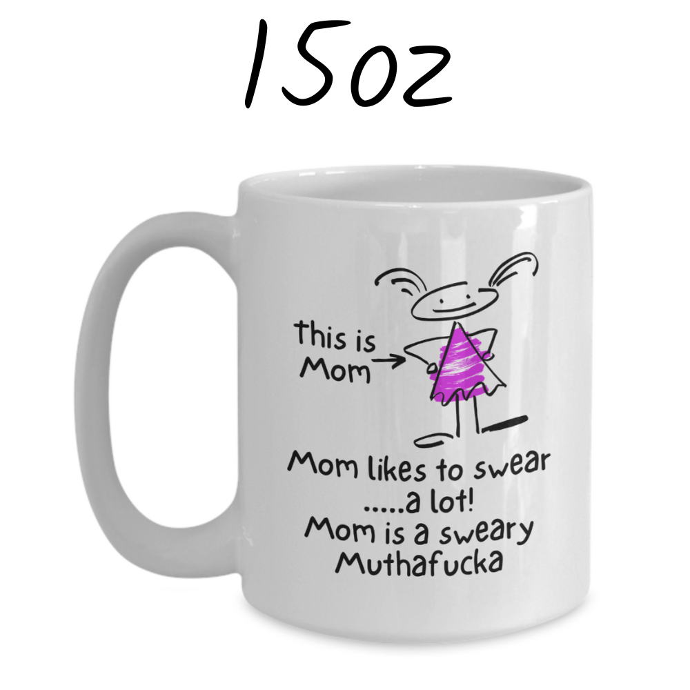 Hilarious Message: The front side of the mug proudly declares: "This is Mom. Mom likes to swear....a lot! Mom is a sweary Muthafucka" This cheeky and irreverent message celebrates Mom's colorful language and sense of humor.