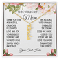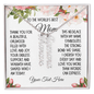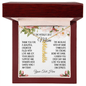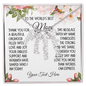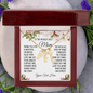 "To the world's best mom. Thank you for a beautiful childhood filled with love and joy. Your endless support and warmth have shaped who I am today. This necklace with my name symbolizes the strong bond we share. I cherish you every day and love you more than words can express. [Your text here]."
