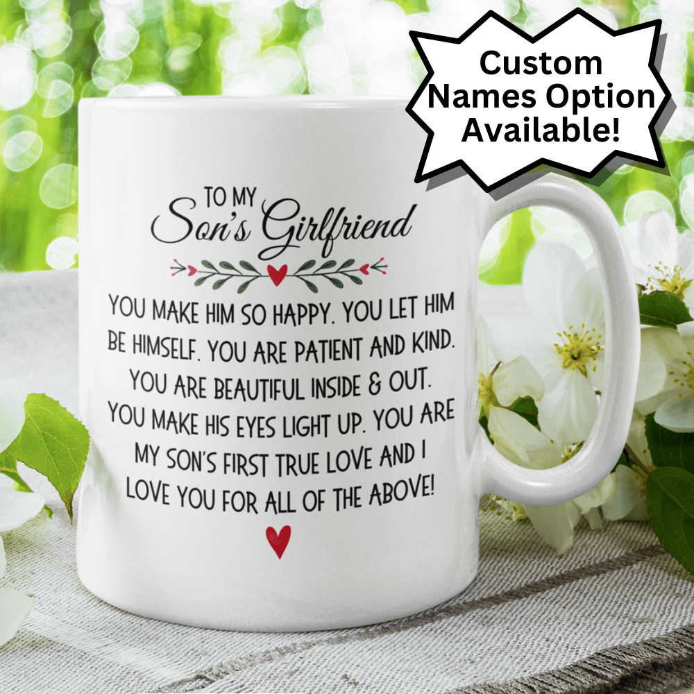 This coffee mug transcends the usual drinkware; it’s a vessel of love and appreciation, symbolizing the joy and gratitude you feel for your son's girlfriend. It's a daily reminder of her significant role in his life and your embracing acceptance, making it an invaluable sentimental gift.