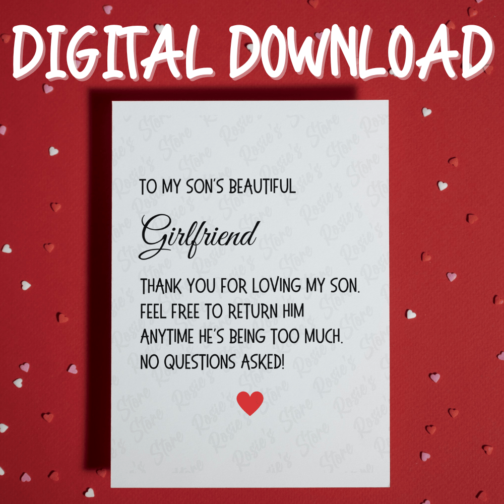 💌💑 "Return Policy" Funny Greeting Card for Son's Girlfriend – Digital Download 💌💑
