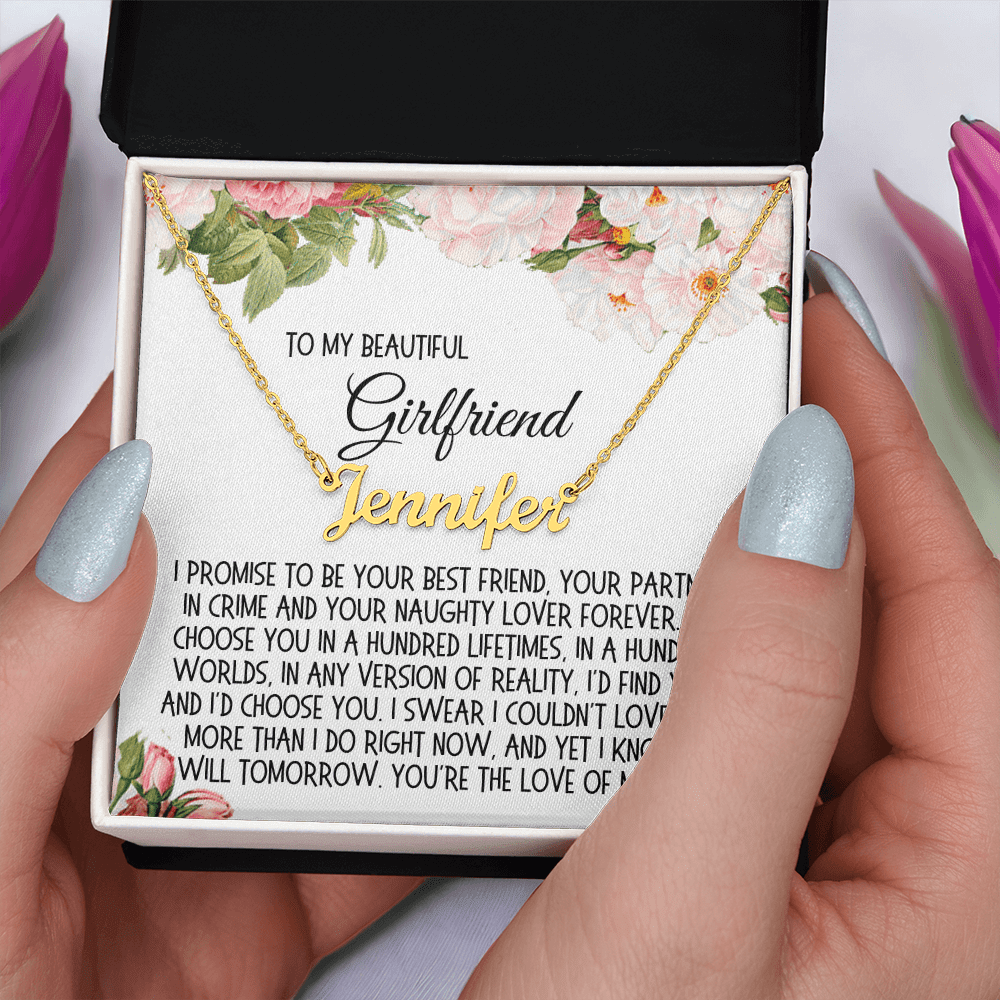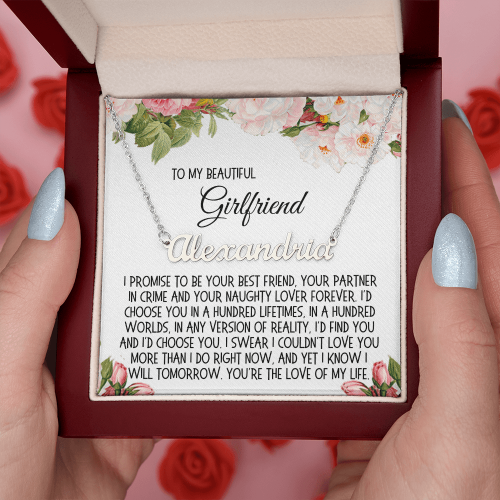 Make every moment unforgettable with this exquisite name necklace—a perfect blend of sentiment and style that proves love is always in fashion. Order yours today and give her a gift that speaks straight to the heart!