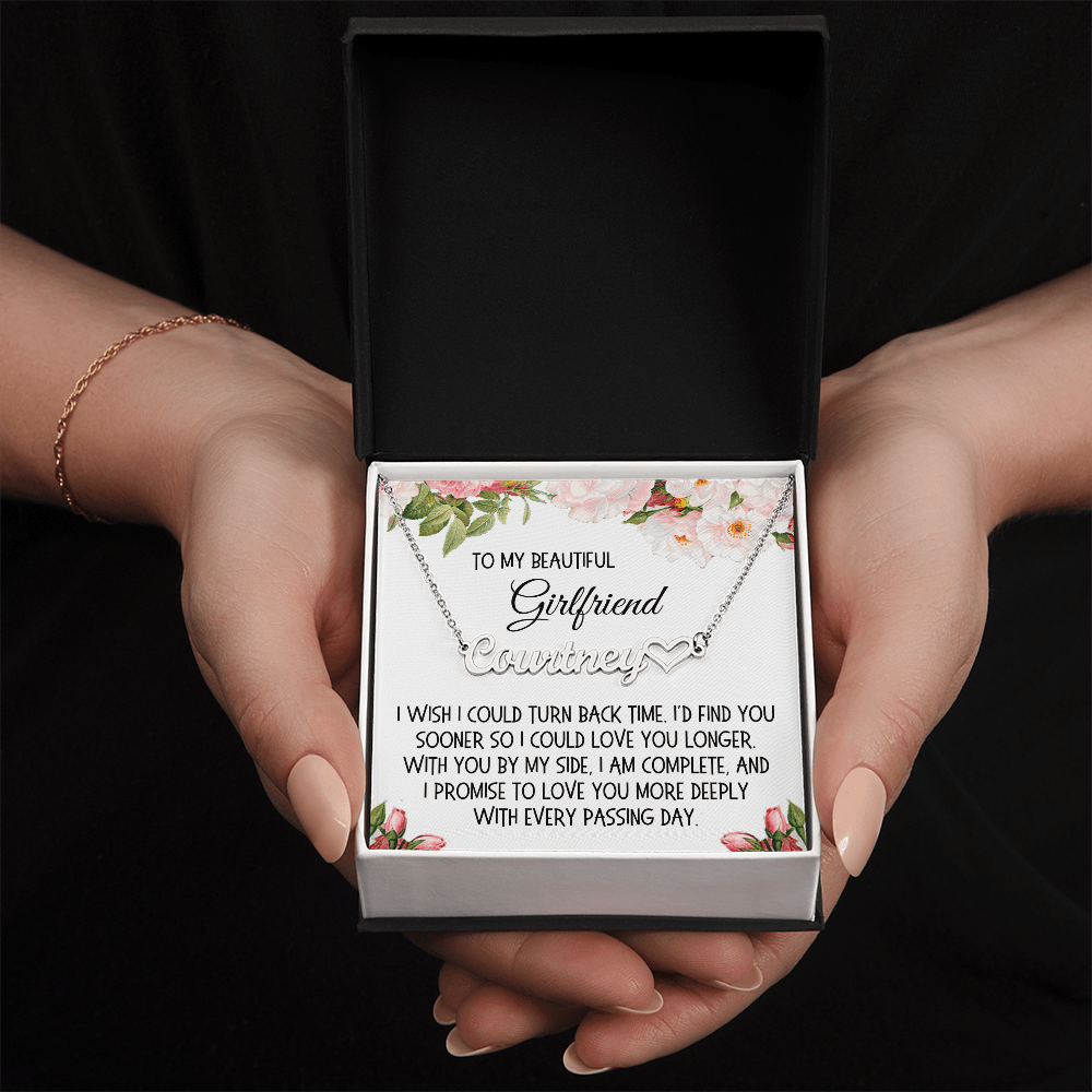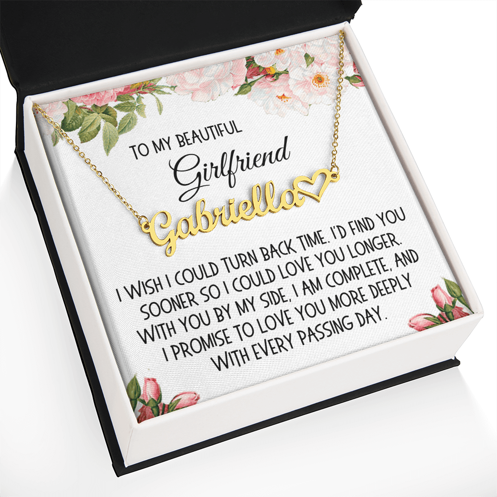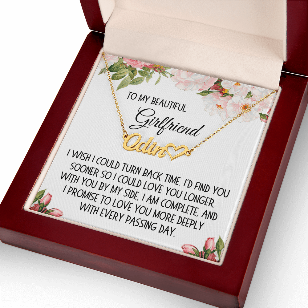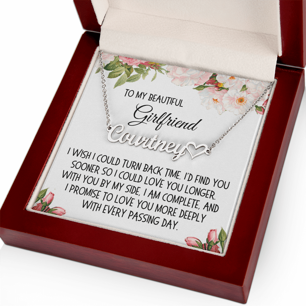 Girlfriend Gift, Heat Name Necklace: I Wish I Could Turn Back Time...