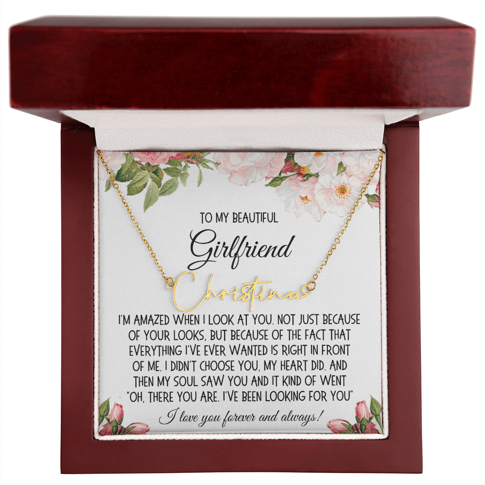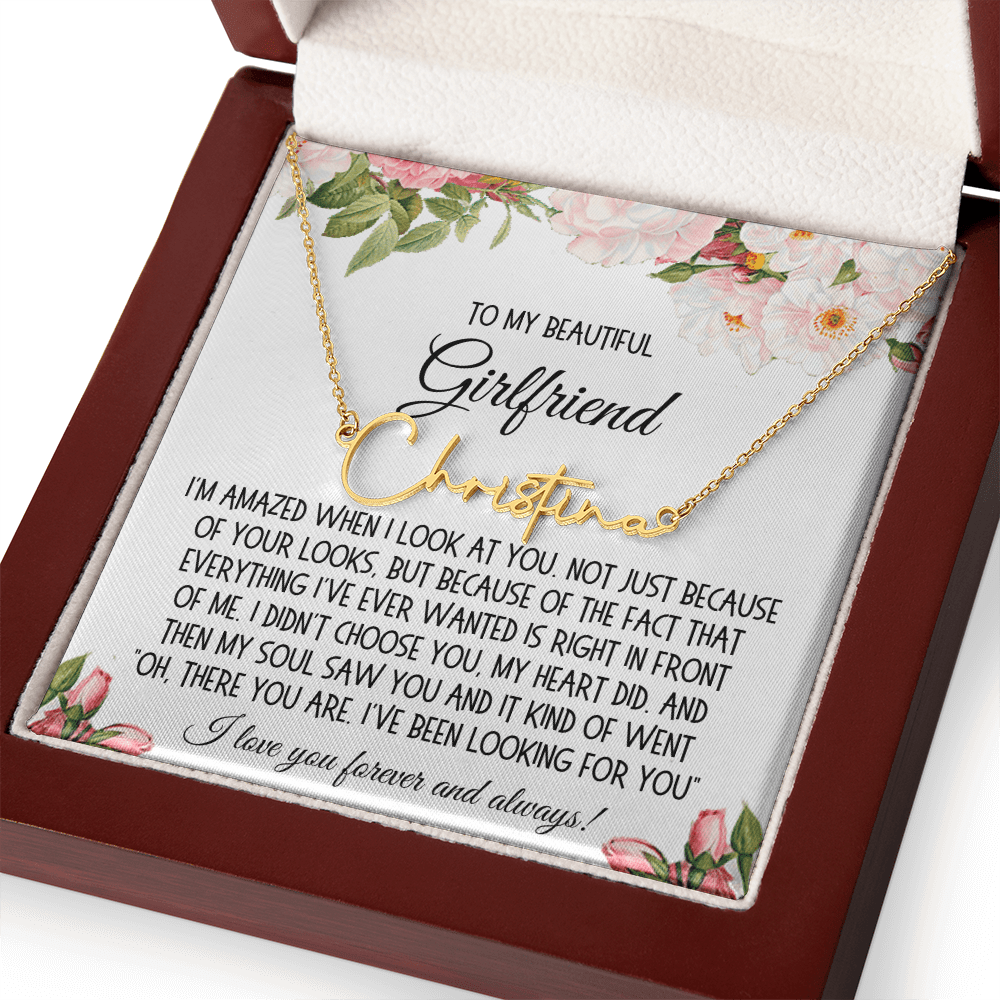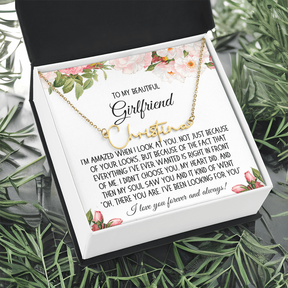 Girlfriend Gift, Signature Name Necklace: I'm Amazed When I Look At You...
