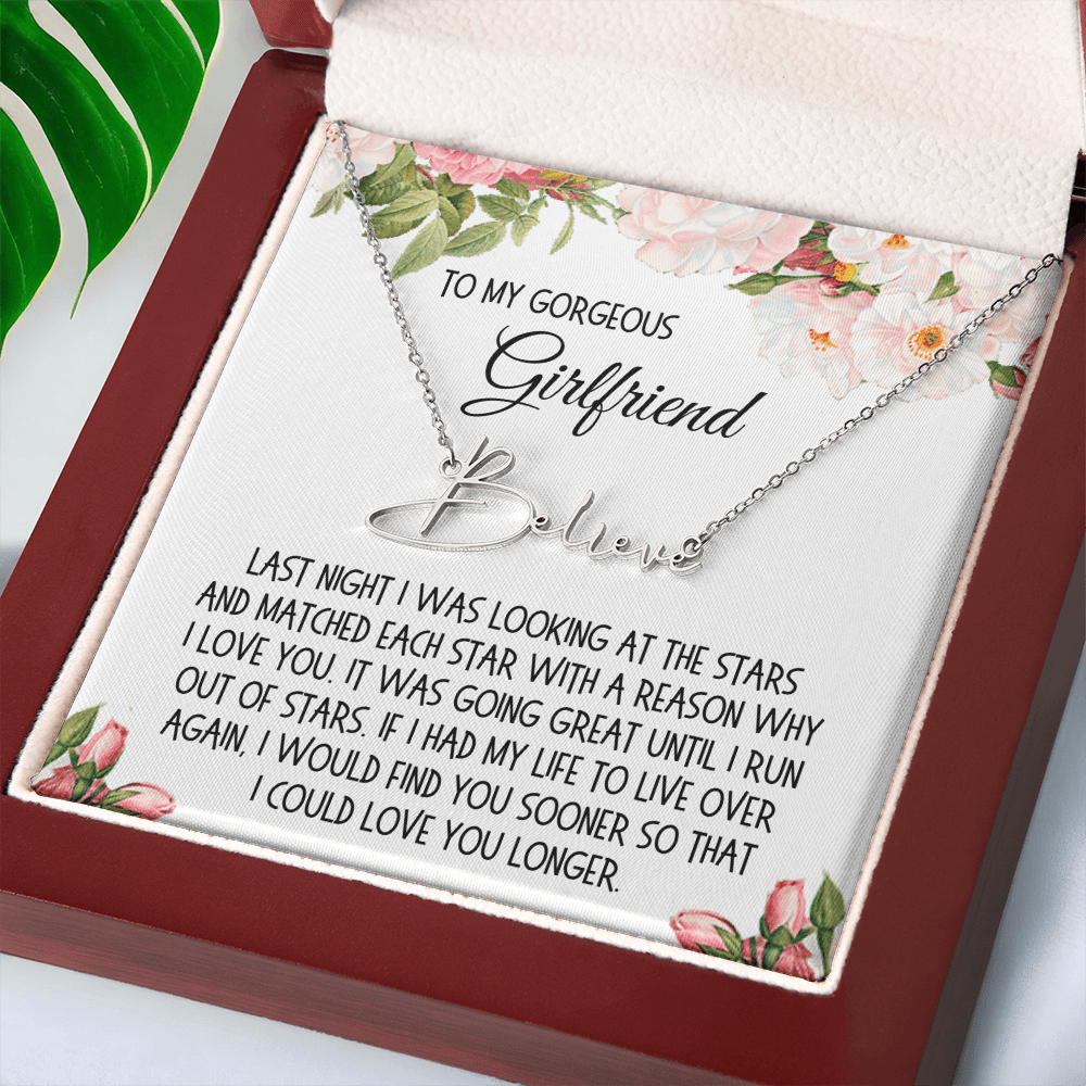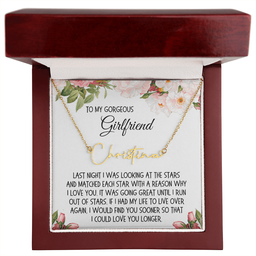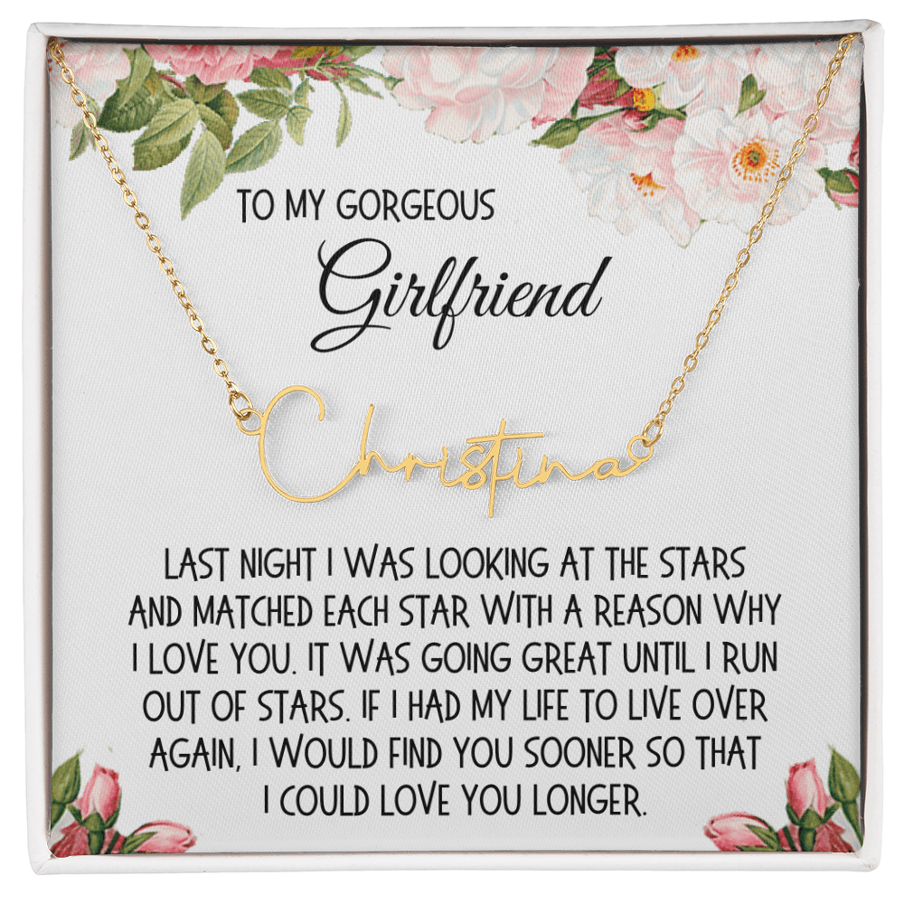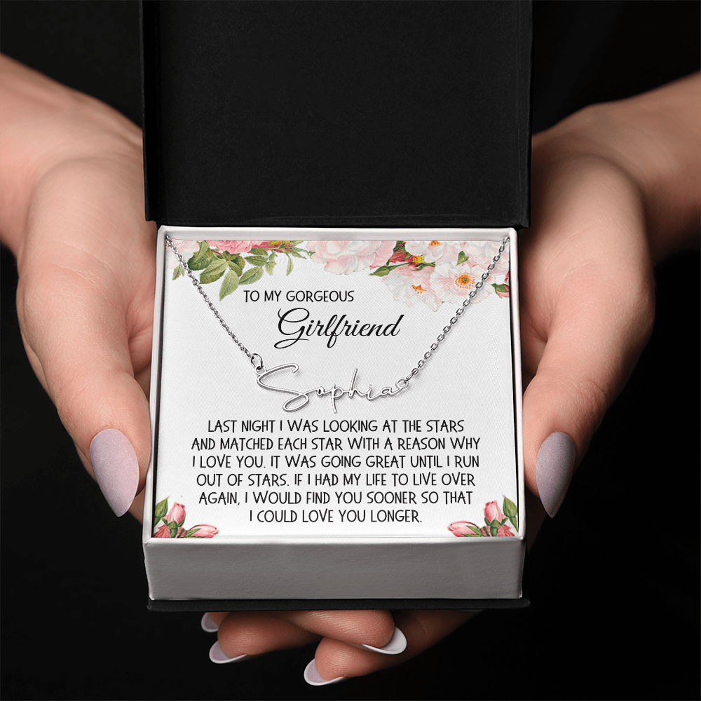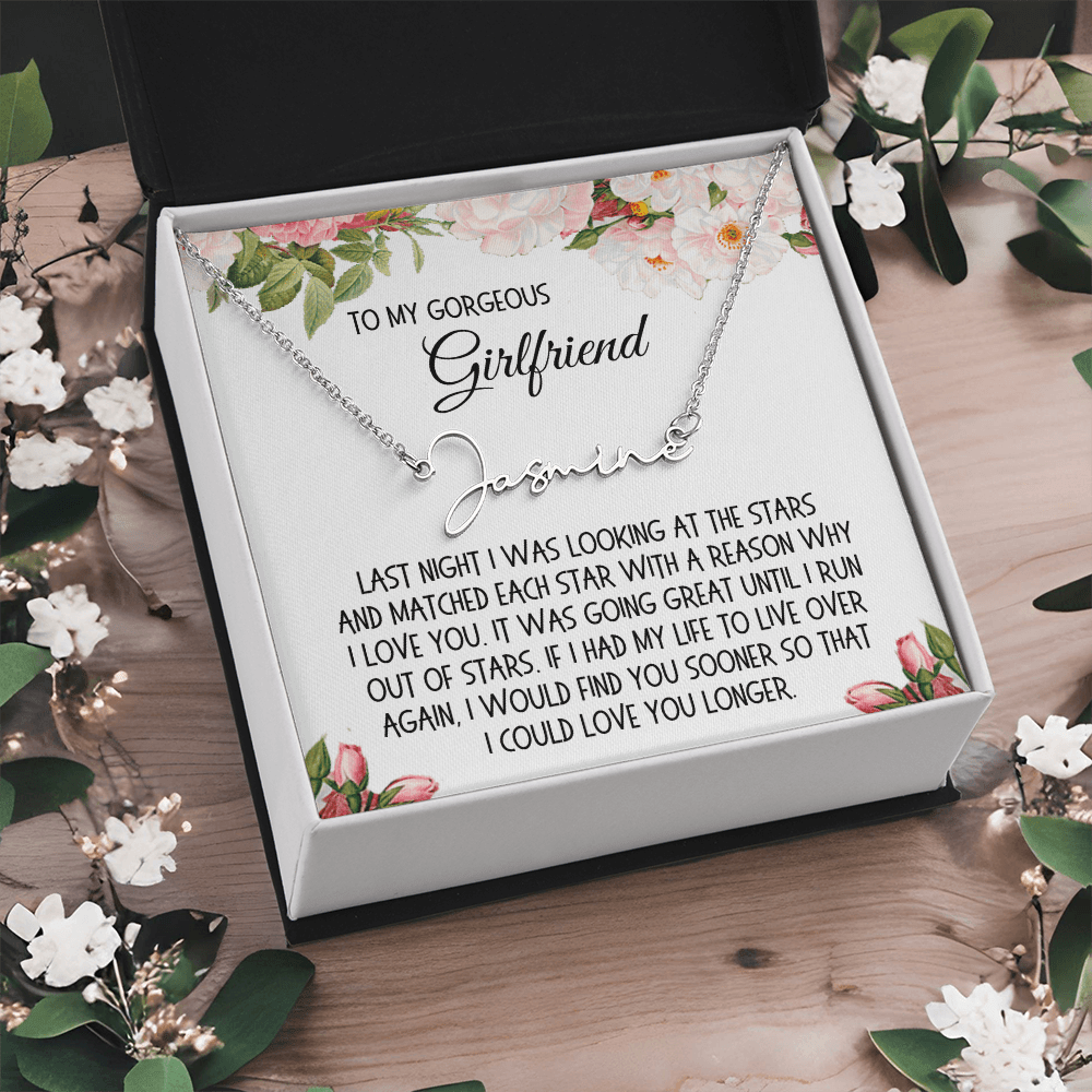 Girlfriend Gift, Signature Name Necklace: Last Night I Was Looking At The Stars