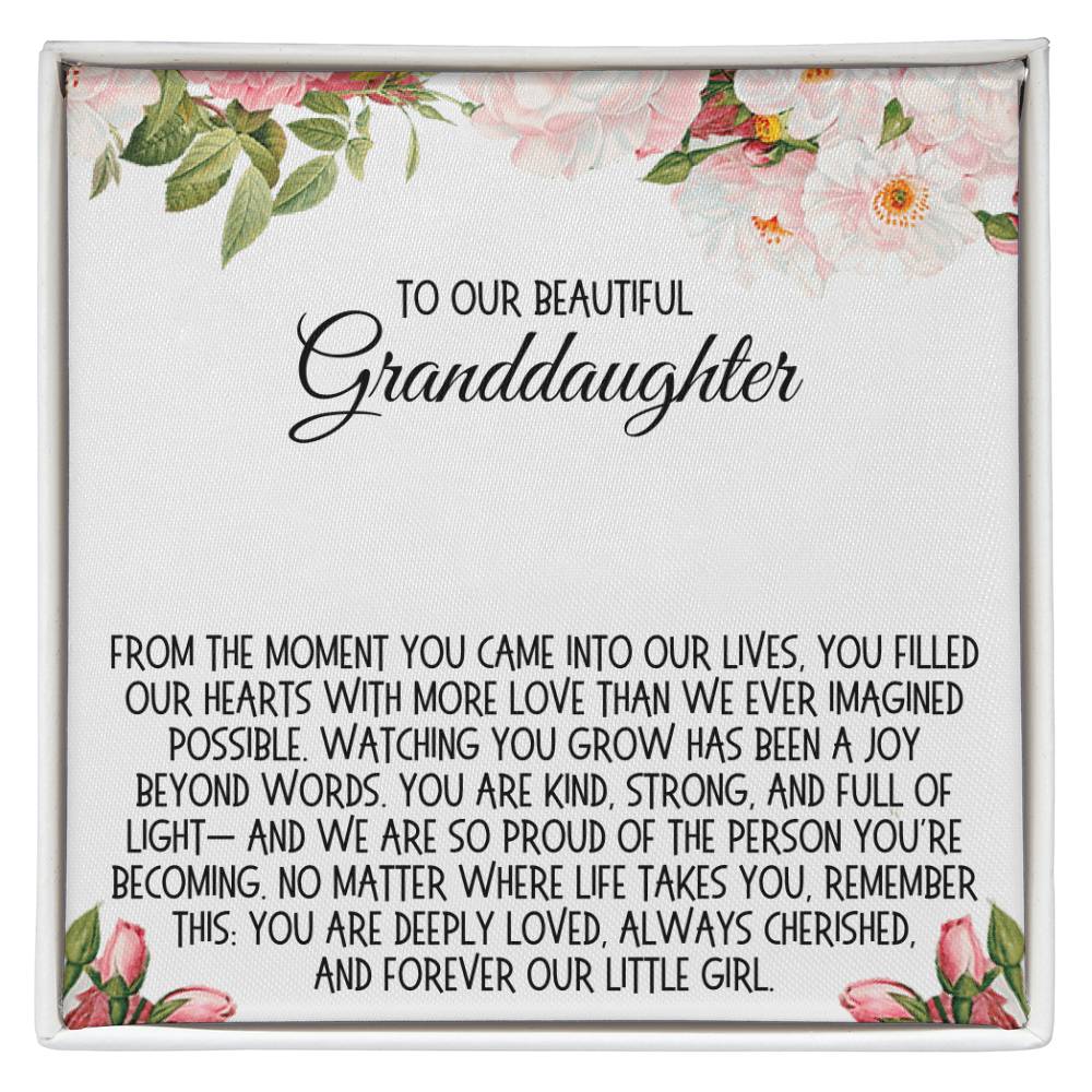 Show your granddaughter just how much she means to you with this custom personalized name necklace, presented in a beautiful gift box with a heartfelt message card. 💖