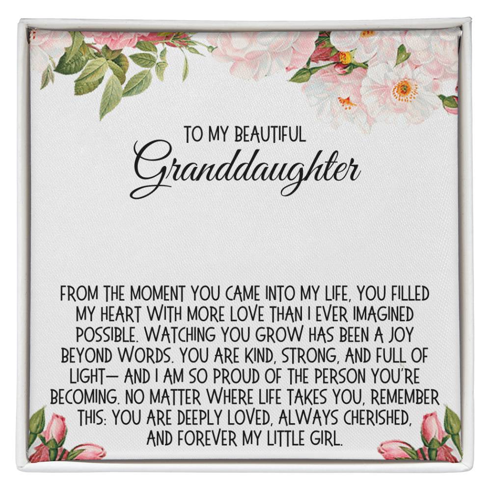 "To my beautiful Granddaughter. From the moment you came into my life, you filled my heart with more love than I ever imagined possible. Watching you grow has been a joy beyond words. You are kind, strong, and full of light— and I am so proud of the person you’re becoming. No matter where life takes you, remember this: you are deeply loved, always cherished, and forever my little girl."