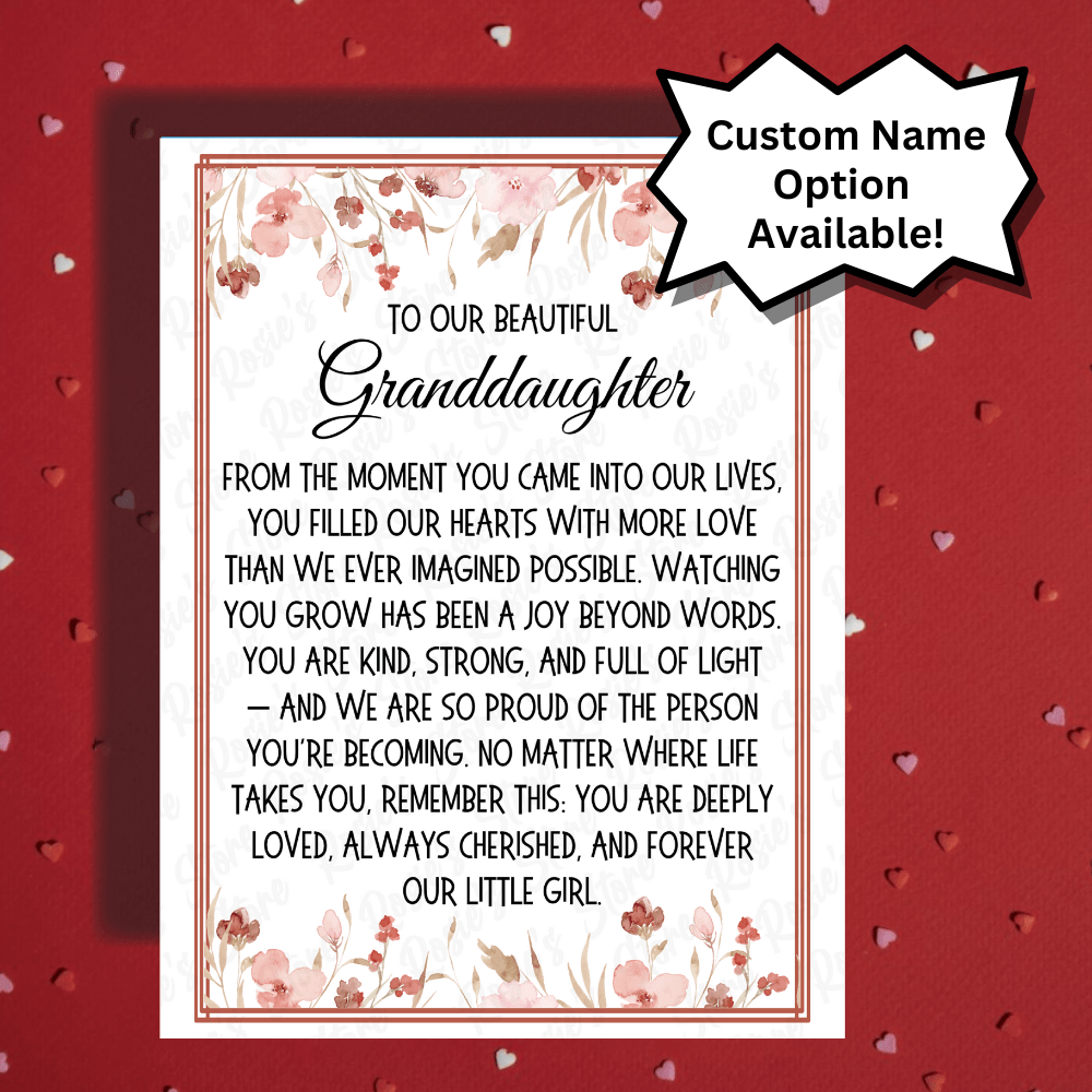 ๐๐ธ To My Beautiful Granddaughter โ Sentimental Greeting Card ๐ธ๐
