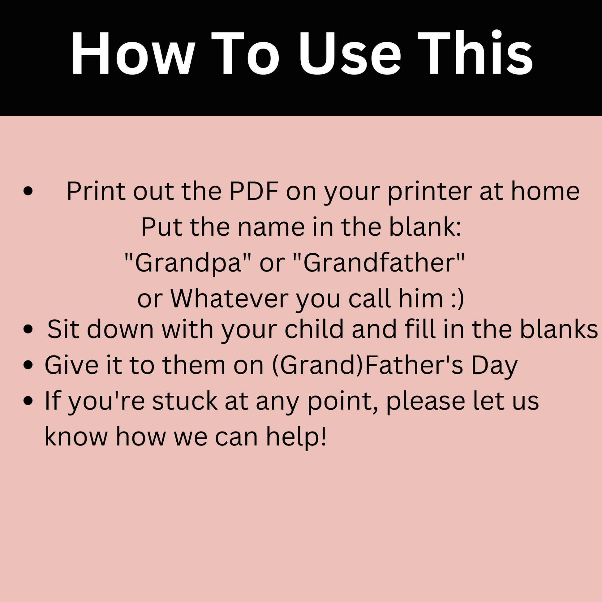 Celebrate Father's Day with a hilarious and heartwarming gift for the world's best grandfather! Introducing our "All About My Grandpa" Father's Day Printable Craft!