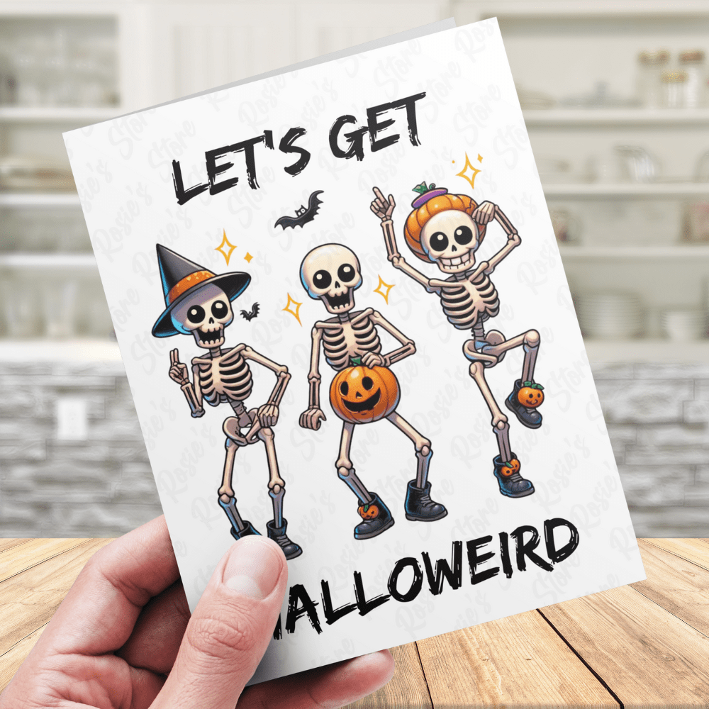 Ideal for sending to your bestie or inviting friends to a Halloween party, this card is a perfect choice for those who love to get a little "Halloweird" during the spooky season. Whether you're looking for a personalized card, Halloween greeting cards, or a unique Halloween party invitation, this illustrated skeleton card is sure to make everyone smile.