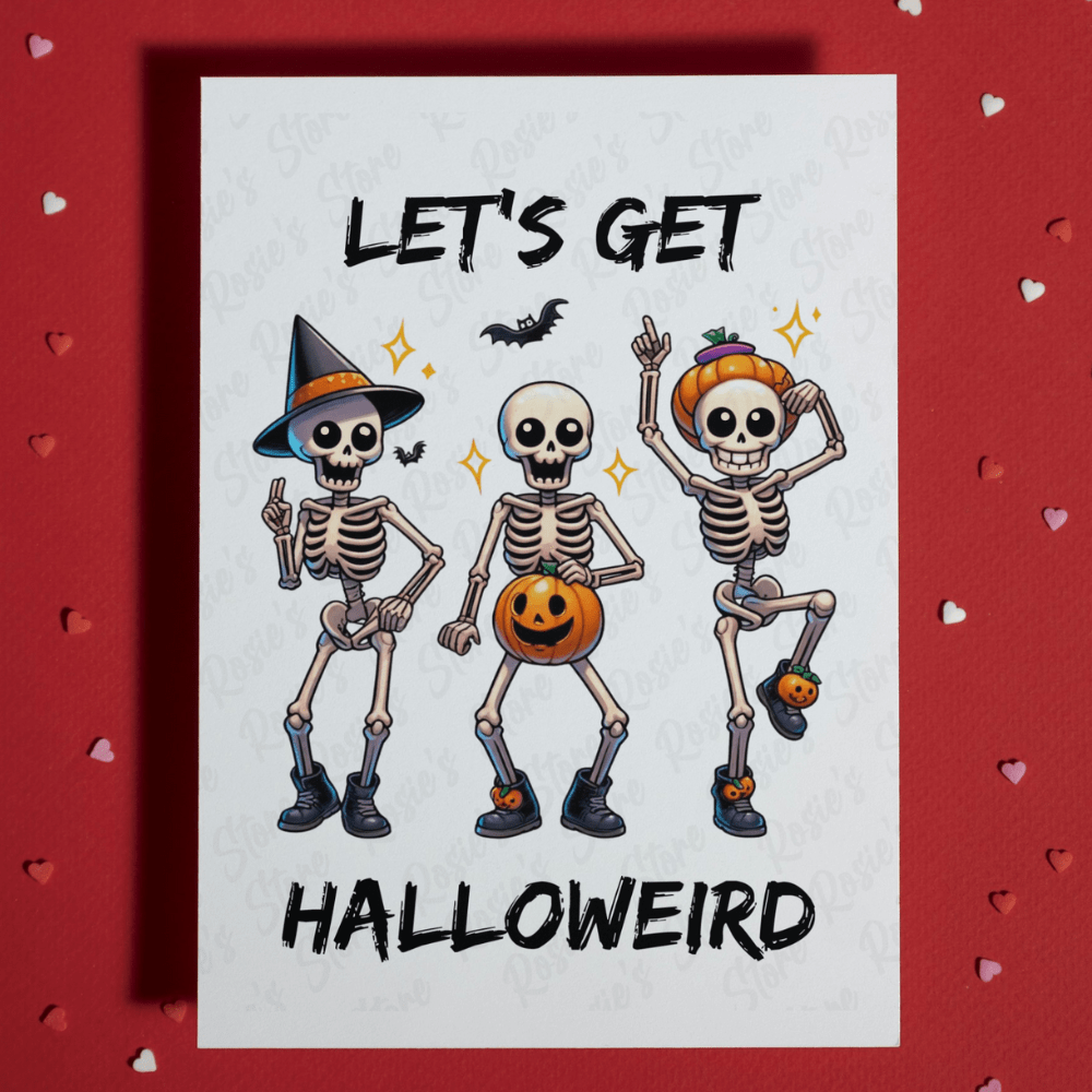 Halloween, Dancing Skeletons Greeting Card: Let's Get Halloweird