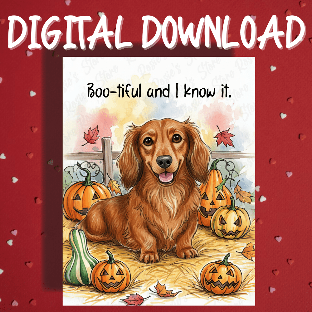 This card is perfect for any dachshund dog lover and adds just the right mix of cuteness and sass to your Halloween or Fall greetings! Whether you're sending it to family, friends, or a fellow dog parent — this card says “I’m boo-tiful, and I know it!” 💁♀️🐾