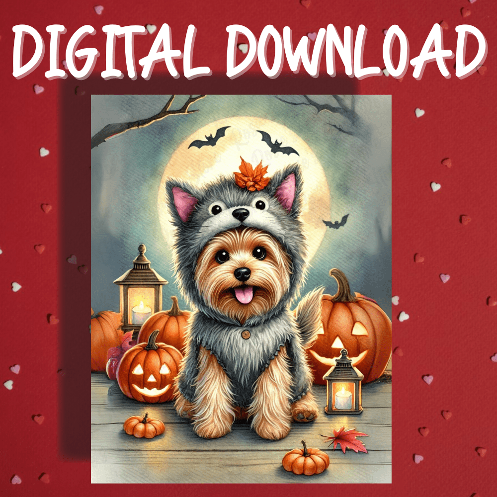 🎃💌 This adorable Yorkie is ready to make your Halloween greetings unforgettable – grab yours today and let the hauntingly cute vibes begin!