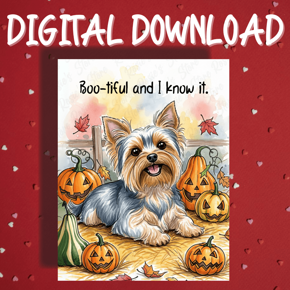 Halloween Fall Digital Greeting Card, Yorkie Dog Pet Lover: Boo-tiful and I Know It.