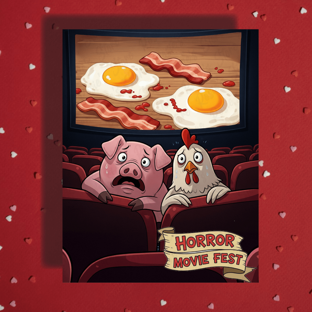Get Ready for a Scream (and a Laugh!) with Our Horror Movie Night Card! 😱🥓🍳