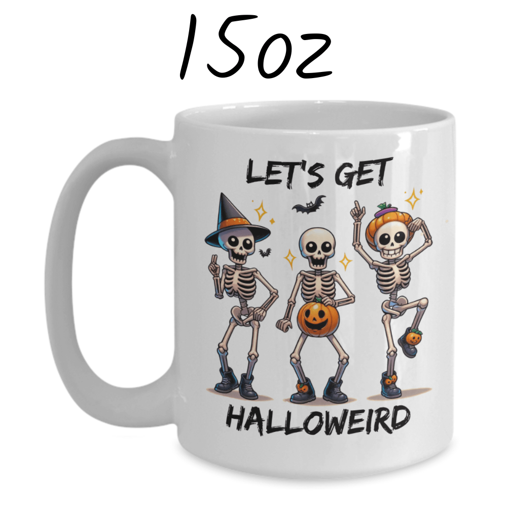 With the "Let's get Halloweird" coffee mug, every sip is an invitation to enjoy the playful and peculiar side of Halloween, making it the perfect companion for anyone who loves to celebrate the season with a twist of fun and whimsy.