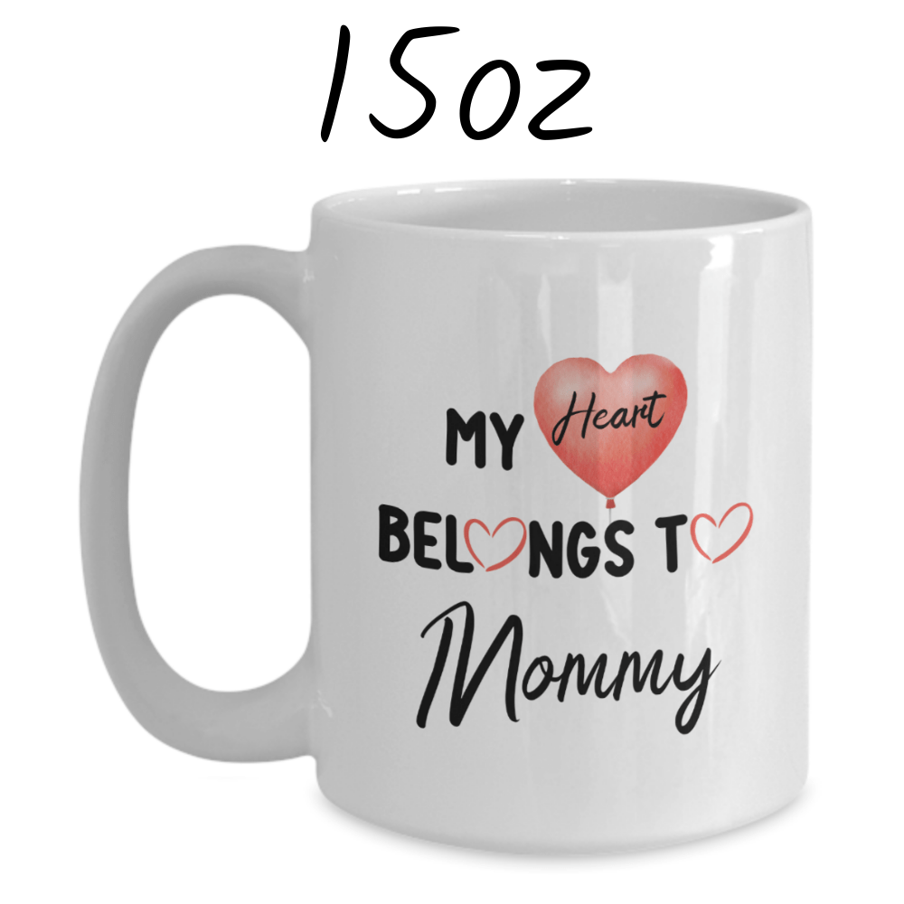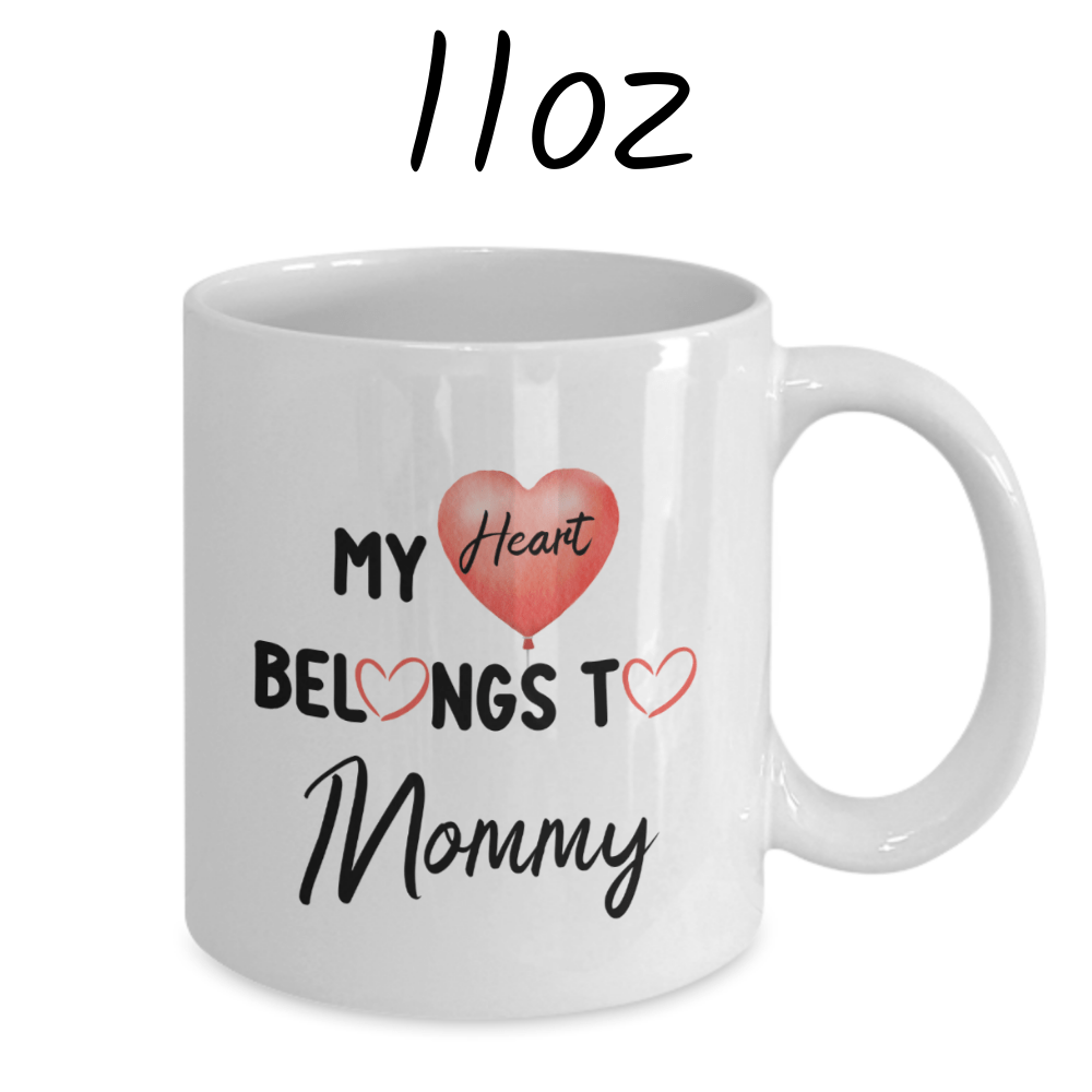 Option 1: Standard Design 💖 This mug features a heartwarming message: "My heart belongs to Mommy" It's a sweet sentiment that captures the special bond between a child and their beloved mother. Perfect for Mother's Day, birthdays, or any occasion when you want to show Mommy how much she means to you.