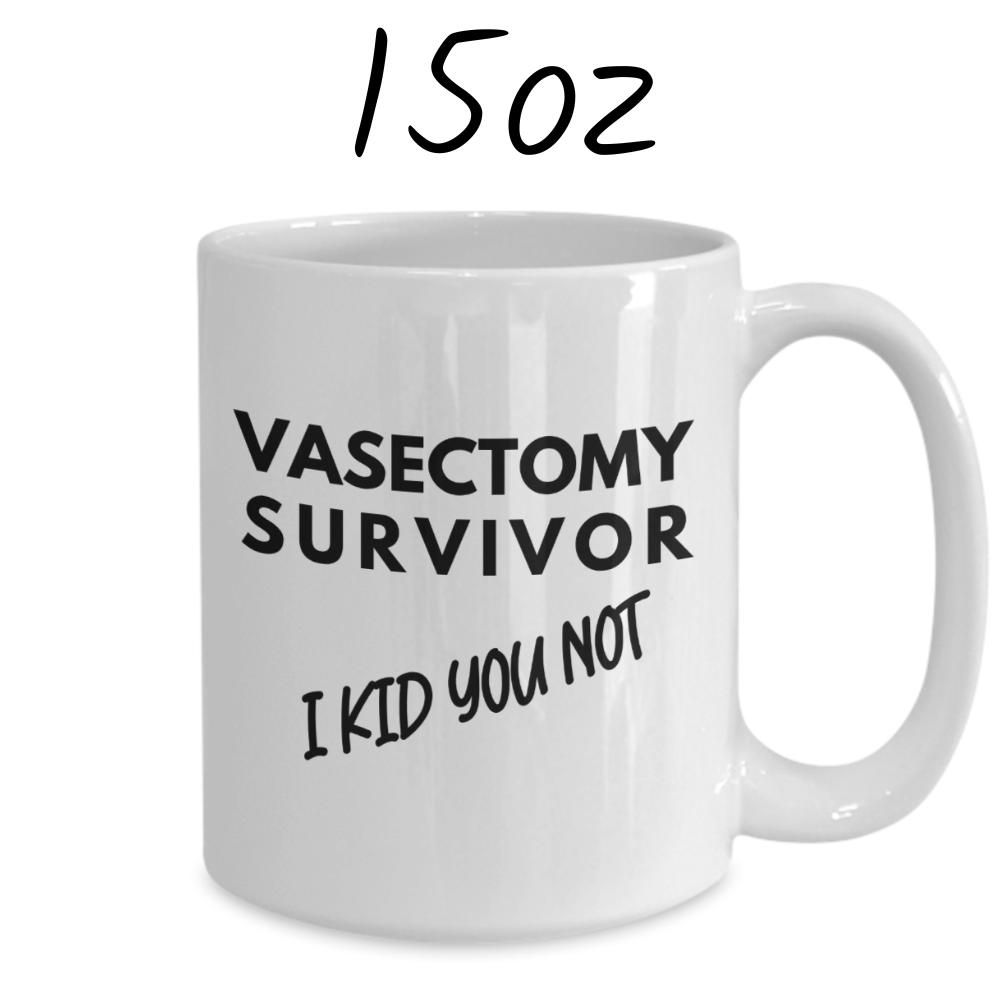 Introducing our sweet and empowering "Vasectomy Survivor I Kid You Not" coffee mug. If you've been through the journey of vasectomy and want to celebrate your triumph with a touch of humor or if you're looking for a gift for the special man in your life, this mug is perfect for you.